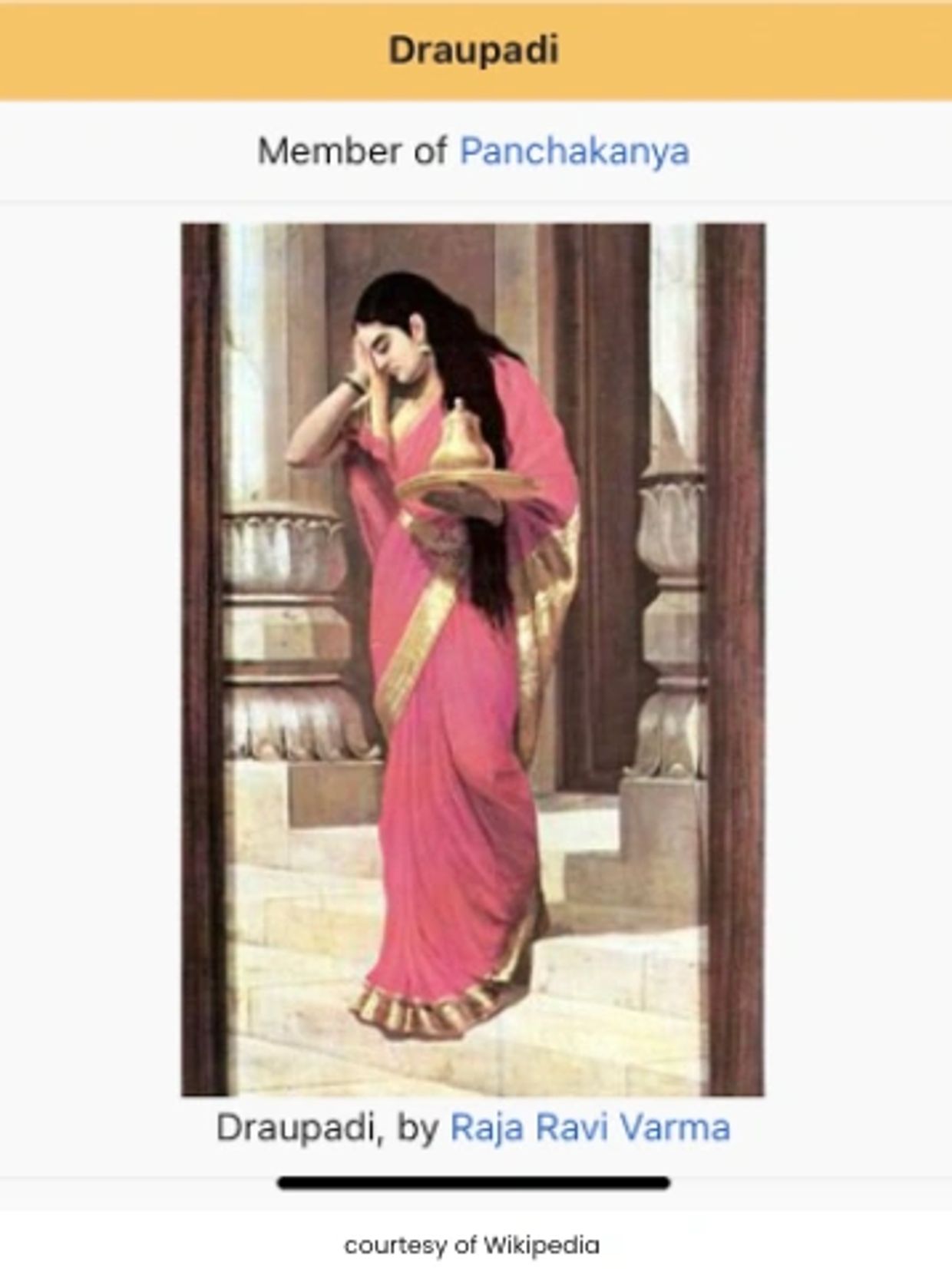 Draupadi is a Sanskrit word meaning “draped”, as in drapery. In the Ramayana, the second Sanskrit epic, which took place around 6 BC, SuparnaKA, the demon who comes between Ram and Sita, is also the equivalent of Mazikeen in the Bible. The Mahabaratha depicts the Great War that took place between the 5 brothers of Pandava and their cousins the Kauravas.