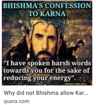As the story goes: KarNa, who is essentially an embodiment of KARMA, always reincarnates along with Draupadi to serve as her teacher of what is right and what is wrong. Karna is the teacher of spiritual truths. In Hindi, ‘kar na’ translates to ‘do not do’.